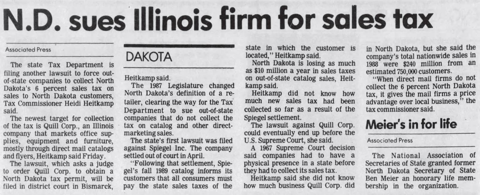 Archive Sen Heidi Heitkamp On Twitter As Nd S Tax Commissioner In 1992 I Brought Ndvquill To Scotus In An Effort To Require Catalog Retailers To Collect State Sales Use Taxes The Court